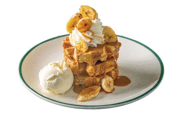 קרם פטיסייר, בננה, שוקולד לבן, כדור גלידה לבחירה מוגש עם טופי קרמל