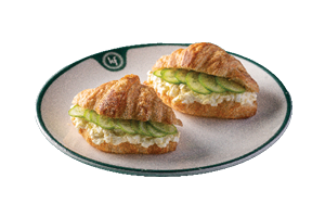 קרואסון חמאה פריך במילוי עשיר של סלט ביצים במיונז ומלפפון